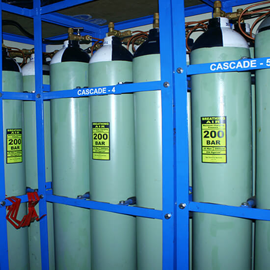 Our air cascade systems include two or more breathing air cylinders that can be installed in your facility or on a mobile air trailer or inside your fire truck. A high pressure breathing air cascade system can be custom built to your design, supplied in containers or mounted on racks and are available for stationary and mobile applications. The cylinders are hydrotested regularly as per statutory requirement.